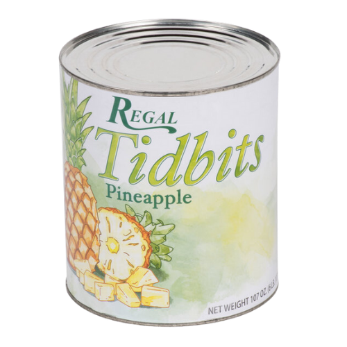 Regal Foods has everything you need for your recipes at an amazing value! Offering superior quality wholesale products, Regal Foods has a variety of canned fruits and vegetables for all of your culinary needs. This #10 can of pineapple tidbits offers easy handling and storage, making this a great option for your bustling kitchen!