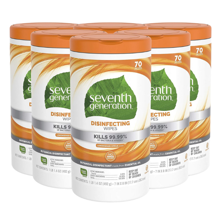 Seventh Generation Disinfecting Multi Surface Wipes, Botanical Disinfectant, 70 Count, Pack of 6